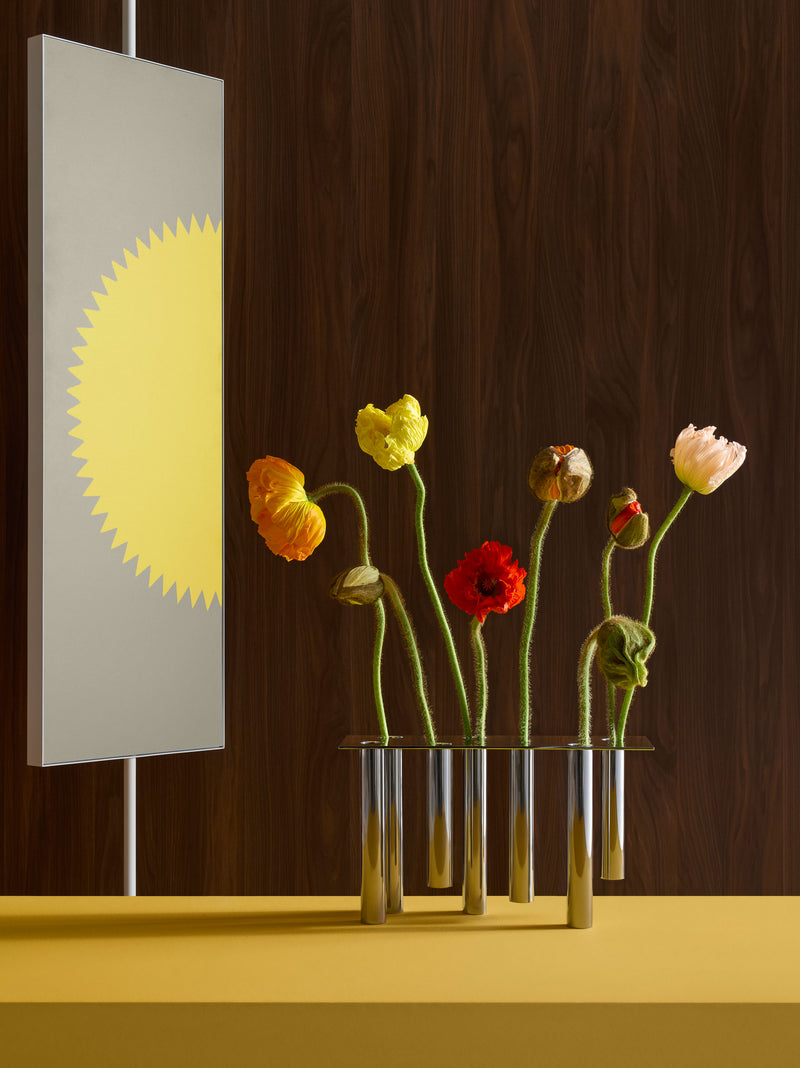 The distinctive designs for Cavallo, Colombo, Architettura, La Mano, Pompei and 7Tubi are crafted from luminous stainless steel. With Bottiglie, Gio Ponti focused on wood, exploring its ability to evolve over time and its unique characteristics.