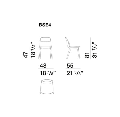 The seat can be matched with three types of base, composed of different materials such as wood or metal, in two versions, which make Barbican perfect for use in different contexts.