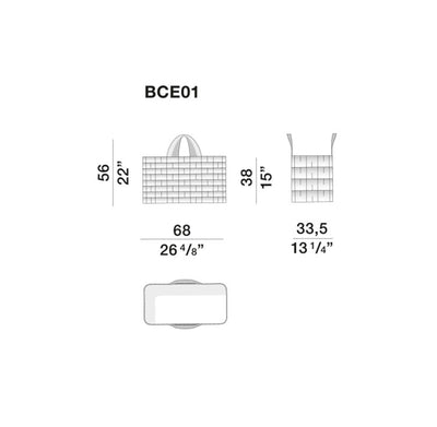 Practical, lightweight and easily movable baskets for towels or magazines are designed to create order and embellish outdoor spaces. They take up the weave theme common to the two outdoor collections, here expressed in the simple warp and weft motif, made of strips of the same size as Hyde pouffe. For reasons of resistance, the baskets are made entirely of olive-green EVA polyurethane.