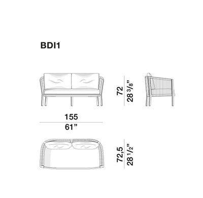 Extending the allure of the Boboli armchair, the two-seater sofa makes a significant debut in the Outdoor collection, boasting an enveloping and welcoming design that harmonizes with the generous and sensual shapes of the armchair.