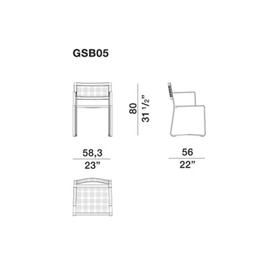 In the seating, the theme of the band of burnished painted aluminium, the fil rouge of the collection, is taken up again in a more leisurely rhythm to create the structure. The bending of the band draws the shape of the backrest and sled bases, with dynamic, agile and angular profiles. A dense, handcrafted polypropylene rope cover is woven onto the metal frame in anthracite, olive green and desert yellow.