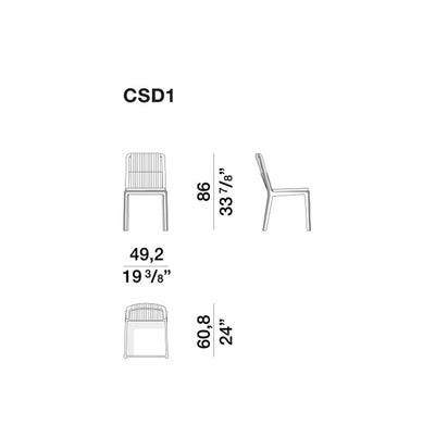 With options available both with and without armrests, the Cobea chair exudes a minimalist aesthetic, providing a canvas for the chair's clean lines and delicate design to shine. The chair’s defining feature is its backrest, intricately woven with polypropylene fiber ribbons. This detailing creates a soft finish and invites a tactile experience reminiscent of cotton, elevating the chair's appeal.