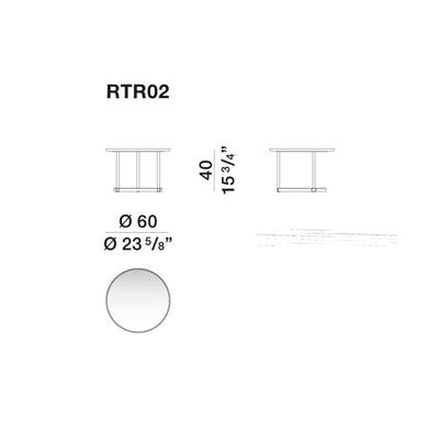 A common and distinctive element of the Regent series is the ring-shaped base. With its slender, minimalist profile, it is made up of two burnished painted aluminium frames: one supporting the top and one at the base, which incorporates, with a refined slotted movement, the two vertical support rods. The base is the result of a profound and careful attention to detail, to the mechanisms for joining the elements and to a precise study of proportions.