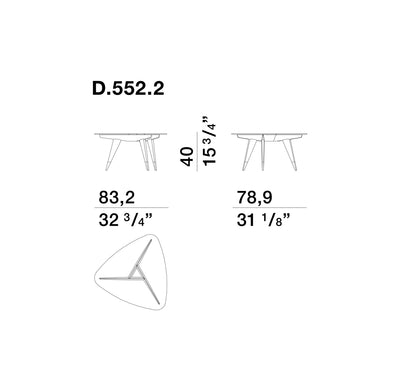 The D.552.2 small table, made of solid rosewood with satinized bronze legs and an ultra light transparent triangular top, belongs to this collection destined for the American market.