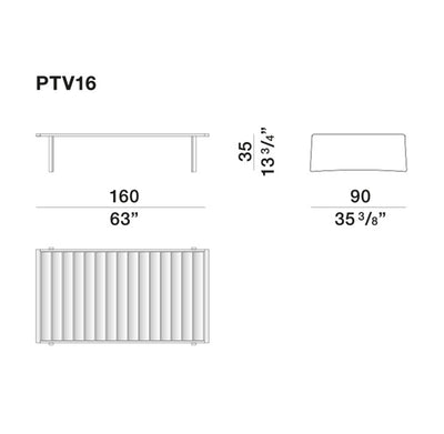 Completing the Timeout Collection is a large low table in two widths, for versatile, intimate or convivial outdoor living spaces. It picks up on the aesthetic motifs of the collection such as the burnished aluminium band, profiles and rounded corners. The support bases, obtained from the continuous run of the same band, are set back from the top to make it visually lighter, as if suspended.