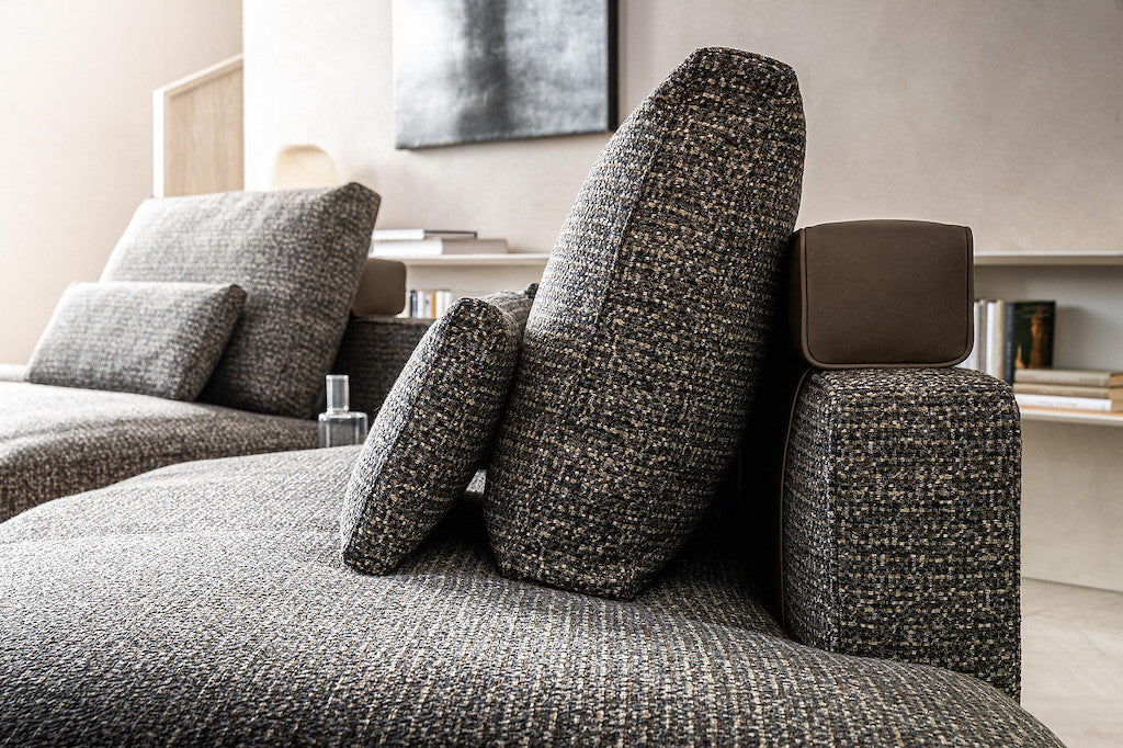 In addition to the traditional linear or corner elements, Octave offers open elements with which to create chaises longues or poufs that can be arranged alongside the composition or used as free-standing elements, also for the centre of the room.