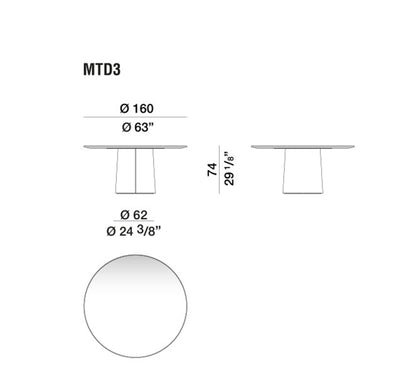 Available in an array of sizes, heights and configurations to suit varying compositions of families and groups, the table is designed to be a centerpiece for creating traditions that span decades. The round edition in 74cm height is available in 140cm, 160cm, 180cm and 200cm whereas the oval version comes in 220cm and 250cm. The lounge version, 64cm height, is available in 140cm and 160cm.